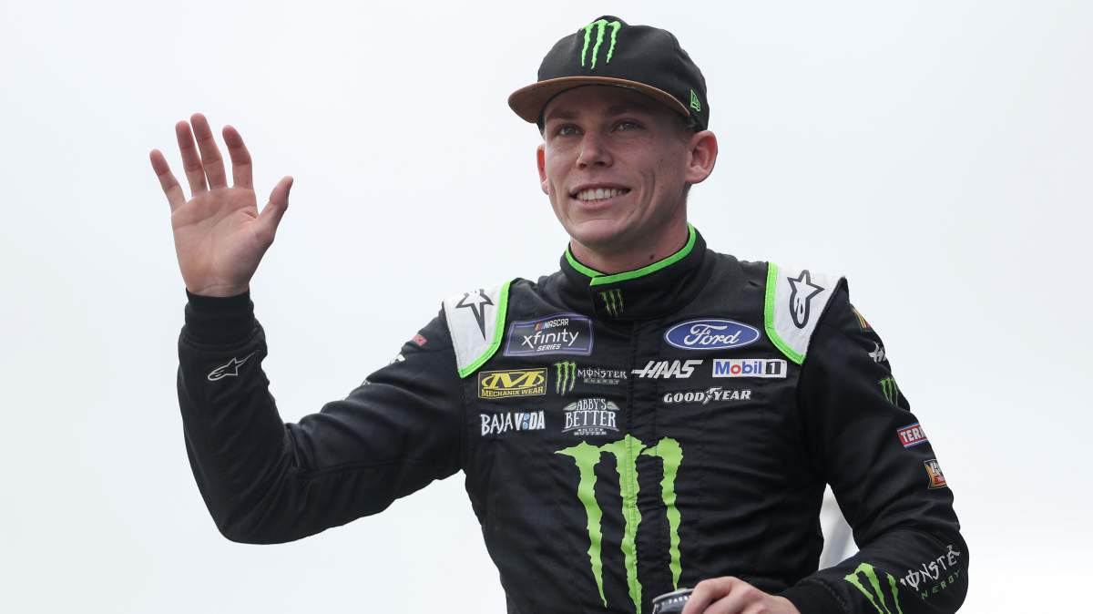 The scheme, which Stewart-Haas Racing revealed on May 8, features a white base with black dripping down toward the bottom. There are bright orange numbers with Monster Energy logos in multiple places. A pair of green stripes also adorn the hood of the Xfinity Series car.