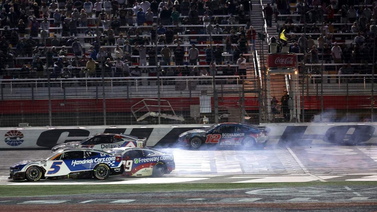 With just a few laps left in Stage 2, Larson attempted an aggressive move while fighting for fifth. His No. 5 Chevrolet drifted up the track and clipped the left rear of Blaney’s No. 12 Ford.
