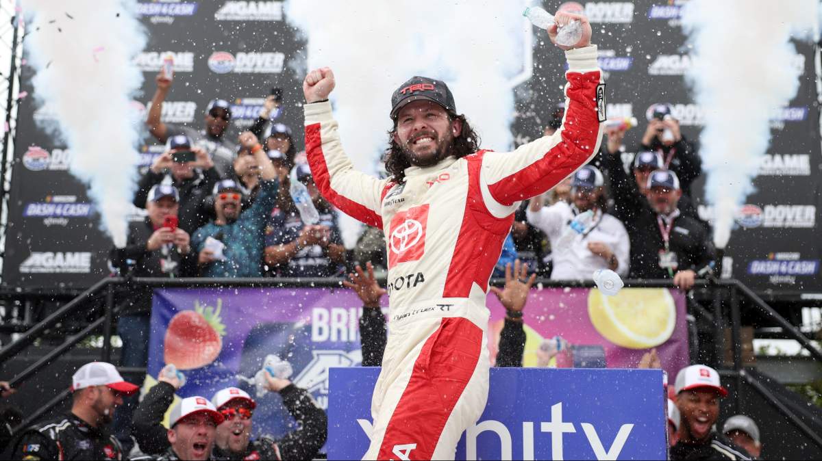 GettyRyan Truex celebrates a win at Dover Motor Speedway.