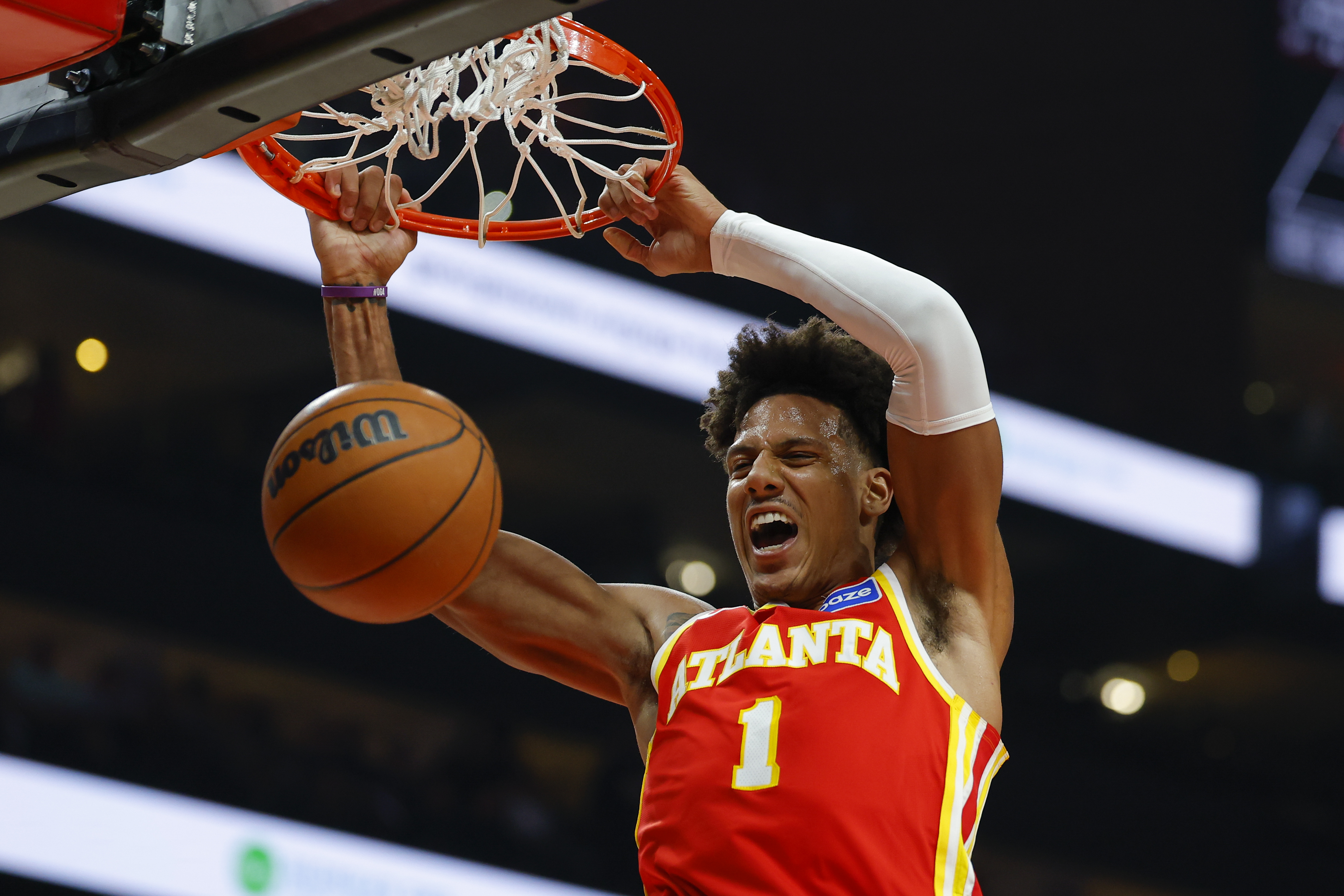 GettyATLANTA, GEORGIA – OCTOBER 22: Jalen Johnson #1 of the Atlanta Hawks dunks during the first quarter against the Toronto Raptors at State Farm Arena on October 22, 2025 in Atlanta, Georgia. (Photo by Todd Kirkland/Getty Images)
