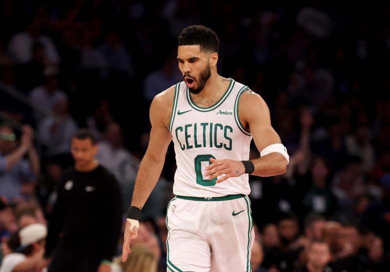 GettyBoston Celtics forward Jayson Tatum celebrates.(Photo by Elsa/Getty Images)