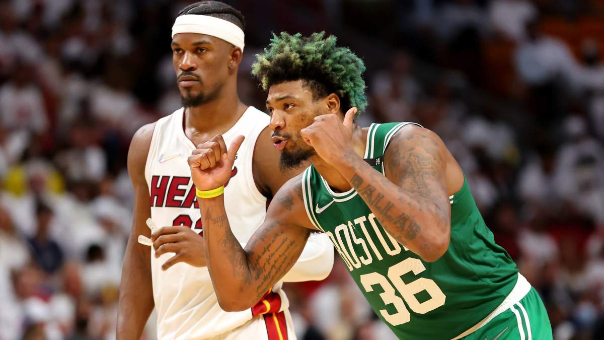 Jimmy Butler and Marcus Smart have different games. Butler is counted to lead the Heat in scoring, while the Celtics look to Smart for large defensive plays and as a complementary scorer on a club with All-NBA forwards Jayson Tatum and Jaylen Brown — though Marcus did have a team-high 22 points in that Game 6 victory in Philadelphia.
