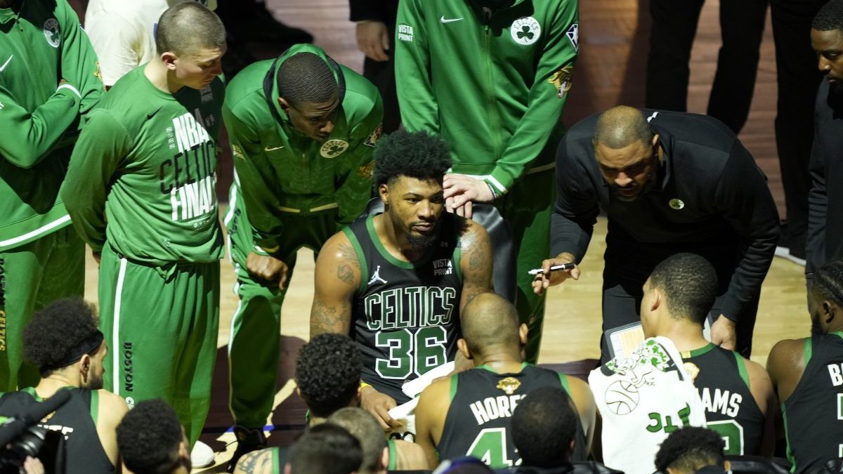 “When you look at the landscape, the Celtics are probably a leading team for Kevin Durant when you look at the pieces that they have. (They have) Jaylen Brown, (they’re) able to add draft picks, other players. If Brooklyn goes that direction, you want as much as you can get, and that includes Marcus Smart, draft picks, which right now, from what I’m told, Boston’s not inclined to do,” Charania said.