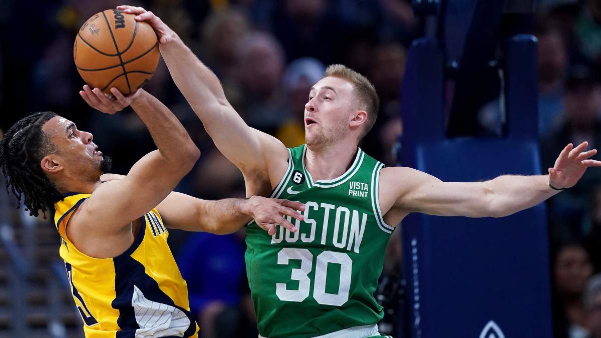 Hauser began by swatting a Jordan Nwora floater. And he was there to support a teammate, denying an Aaron Nesmith layup after Nesmith had stolen the ball from Malcolm Brogdon. Then, early in the fourth quarter, he got Nwora again, rejecting his attempt before the Pacer could fully release the ball. That started a sequence where, eight seconds later, Hauser took a feed from Brogdon and drained a trey.
