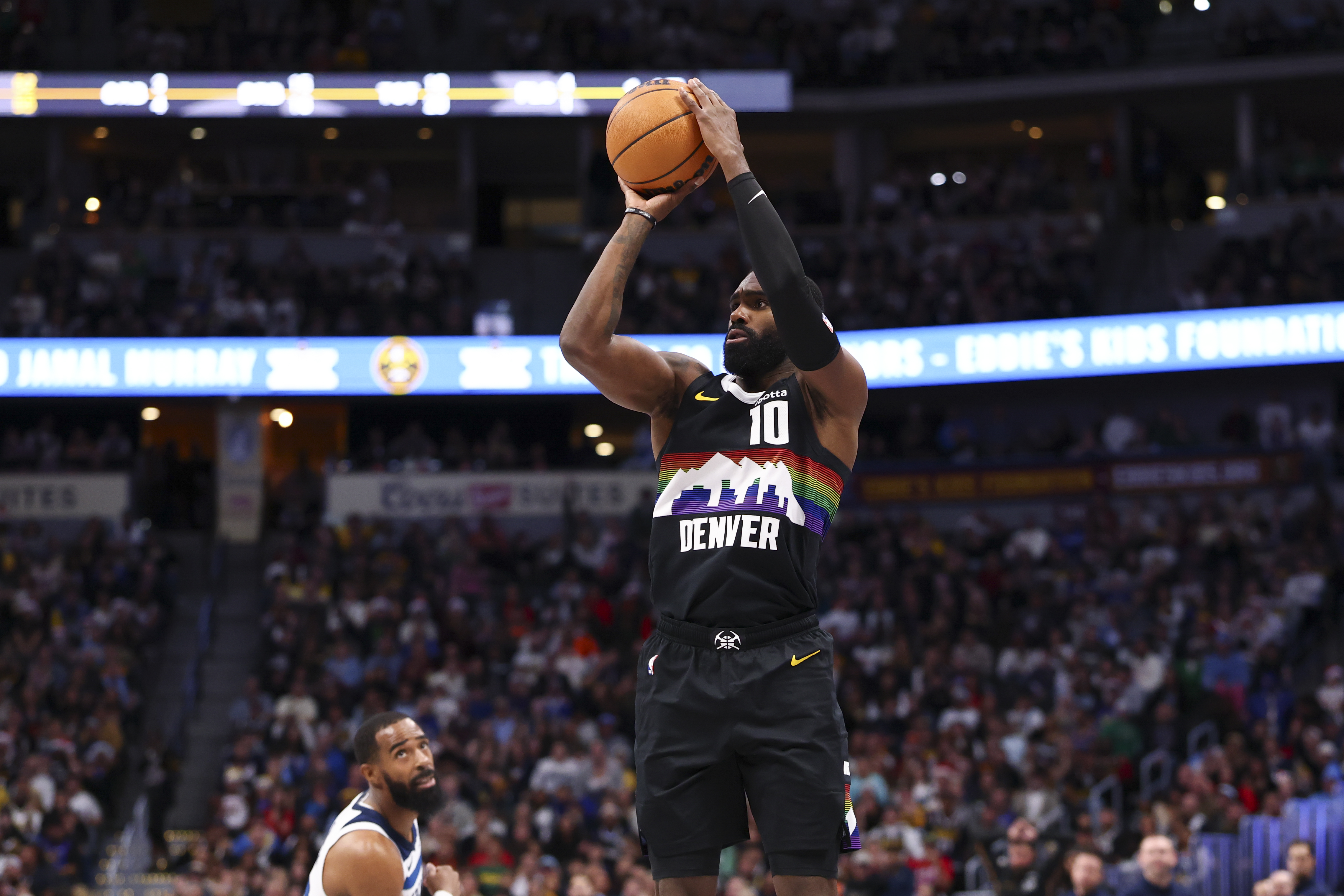 GettyTim Hardaway Jr. #10 of the Denver Nuggets shoots the ball against the Minnesota Timberwolves in the second quarter at Ball Arena on December 25, 2025 in Denver, Colorado.