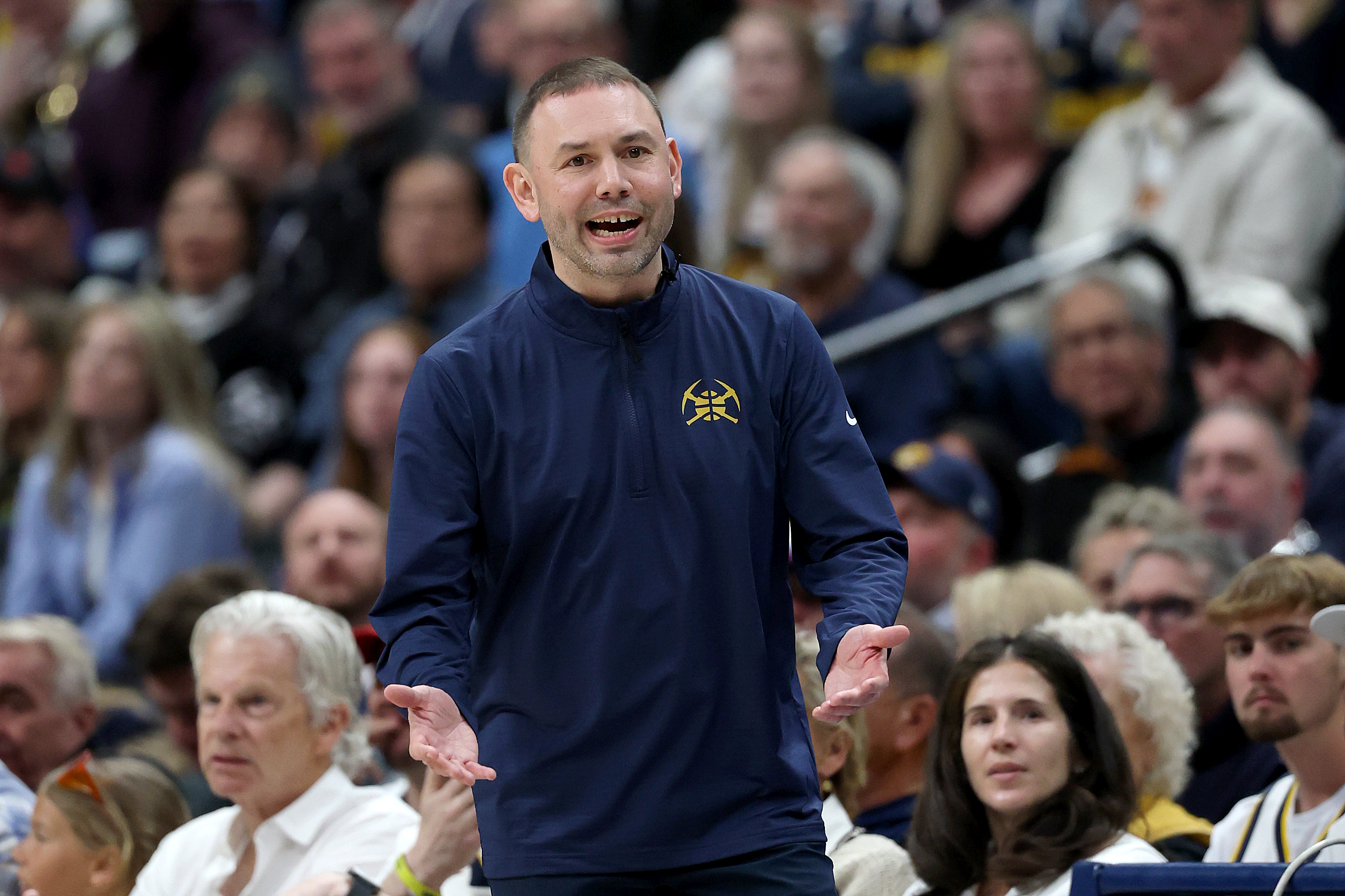 GettyHead coach David Adelman of the Denver Nuggets directs his team against the Minnesota Timberwolves in the fourth quarter during Game One of the First Round of the NBA Western Conference Playoffs at Ball Arena on April 18, 2026 in Denver, Colorado.
