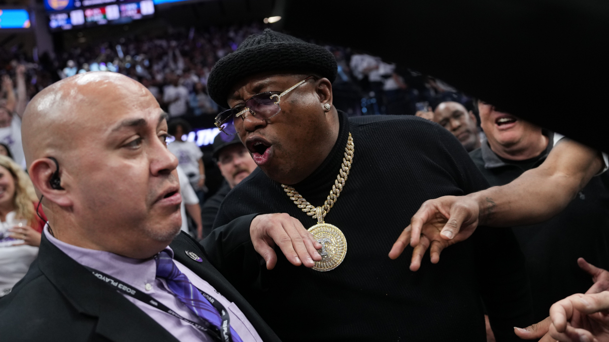 However, that wasn’t the only blow the Warriors faithful took during their squad’s postseason opener at Golden 1 Center. Before the game’s final buzzer sounded, Dubs superfan, Bay Area legend and platinum-selling rapper E-40 was escorted from the stands by security.