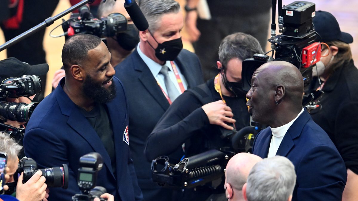 Jordan and James embraced at the 2022 All-Star Game in Cleveland. Jordan was the last player introduced during the halftime ceremony celebrating the top 75 players in NBA history. After the ceremony concluded, James went up to Jordan and the two men shared an emphatic hug.