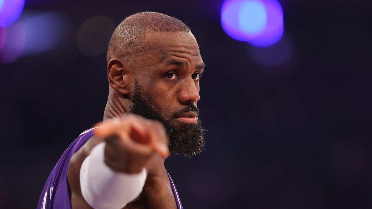 GettyLos Angeles Lakers forward LeBron James reacts on the court. (Photo by Wally Skalij/Getty Images)