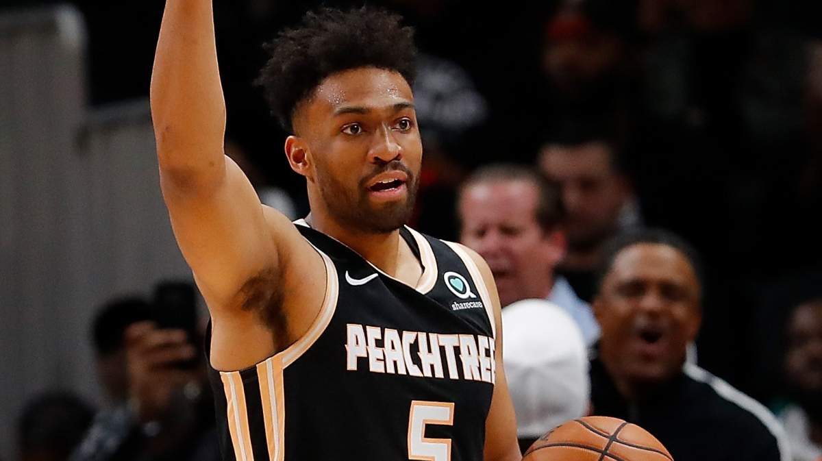 GettyDewayne Dedmon #14 of the Atlanta Hawks reacts after dunking against the New York Knicks in the first half at State Farm Arena on February 09, 2020.