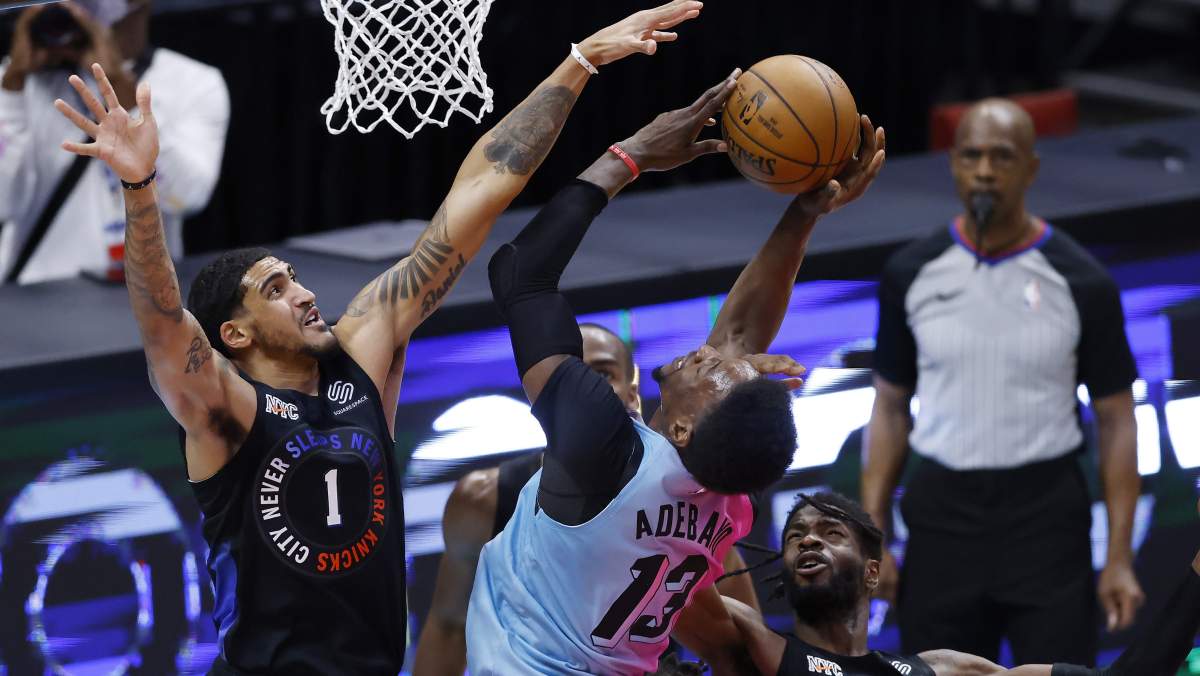 When Butler fell down to the floor on Tuesday night following a hard foul from Julius Randle, his teammates were in on the joke. The Heat All-Star forward was hamming it up for the cameras, a fact he admitted to in his post-game press conference — and guys like Bam Adebayo and Tyler Herro knew it the whole time. The expressions on their faces were priceless.