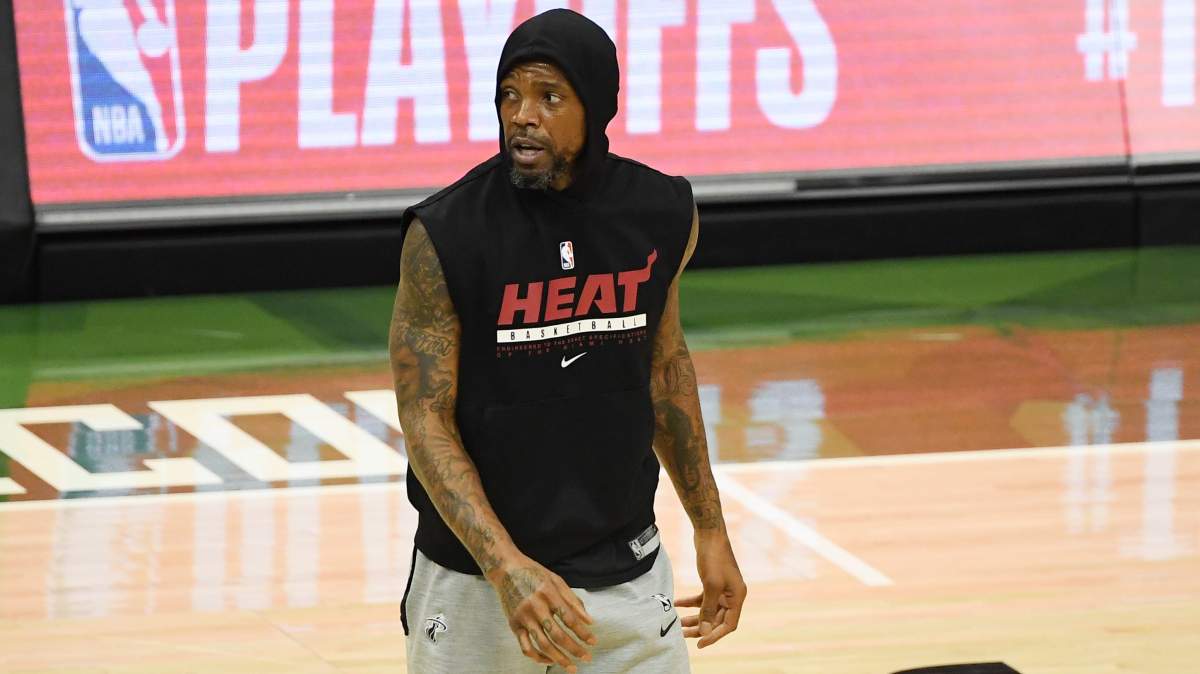 GettyUdonis Haslem #40 of the Miami Heat stretches prior to the game against the New York Knicks at American Airlines Arena on February 09, 2021 in Miami, Florida.