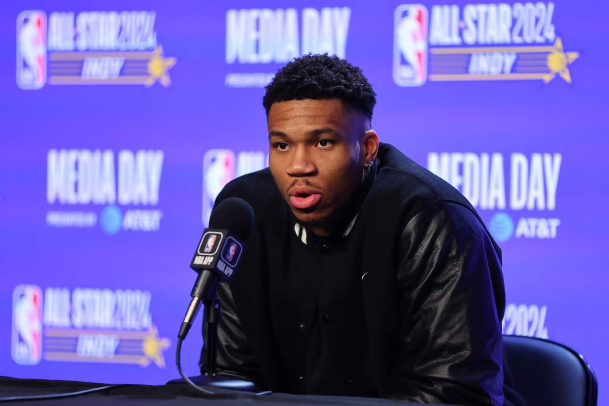 GettyINDIANAPOLIS, INDIANA – FEBRUARY 17: Giannis Antetokounmpo #34 of the Milwaukee Bucks speaks with the media at Gainbridge Fieldhouse on February 17, 2024 in Indianapolis, Indiana. (Photo by Stacy Revere/Getty Images)