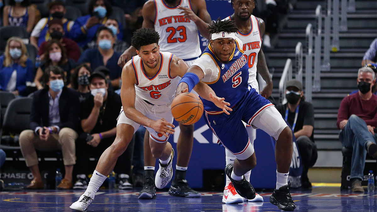 “Quentin Grimes is the next big hope after a solid rookie season, a big guard with a let-it-fly mentality from 3; Grimes was more accurate as a rookie than he was as a collegian, and if that wasn’t an outlier, he has a future as a volume bomber,” he wrote. “If he also can defend good wing players, then New York has something.”