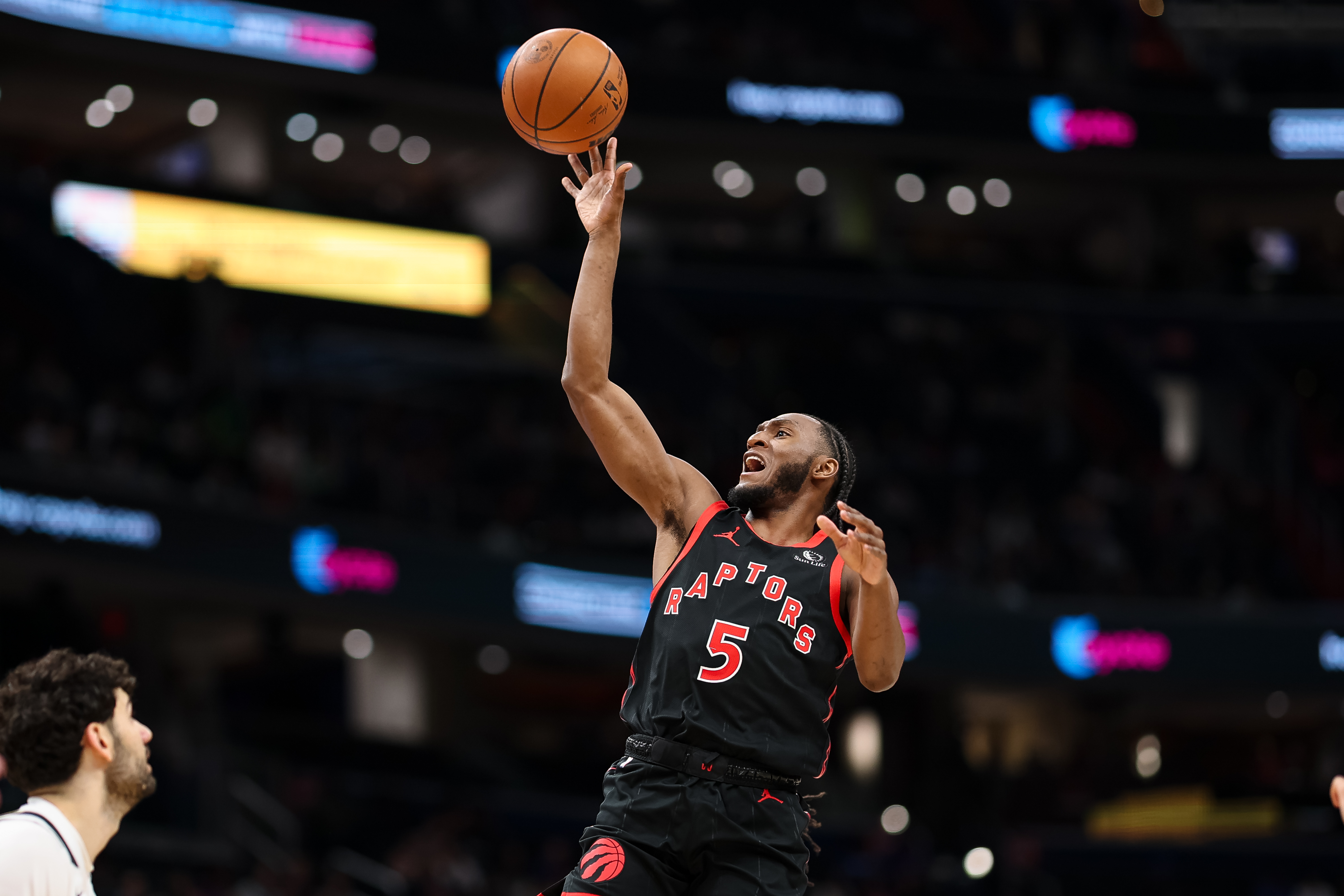 GettyImmanuel Quickley #5 of the Toronto Raptors shoots the ball against the Washington Wizards during the first half at Capital One Arena on February 28, 2026 in Washington, DC.