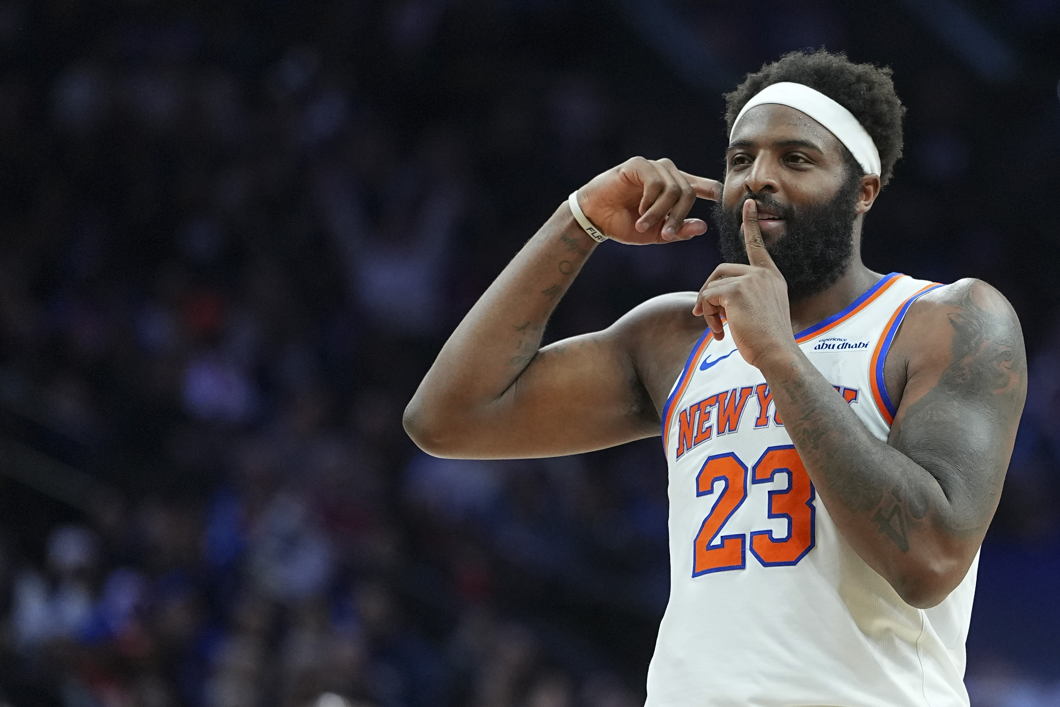 GettyPHILADELPHIA, PENNSYLVANIA – FEBRUARY 11: Mitchell Robinson #23 of the New York Knicks gestures against the Philadelphia 76ers in the third quarter at Xfinity Mobile Arena on February 11, 2026 in Philadelphia, Pennsylvania. The Knicks defeated the 76ers 138-89. (Photo by Mitchell Leff/Getty Images)