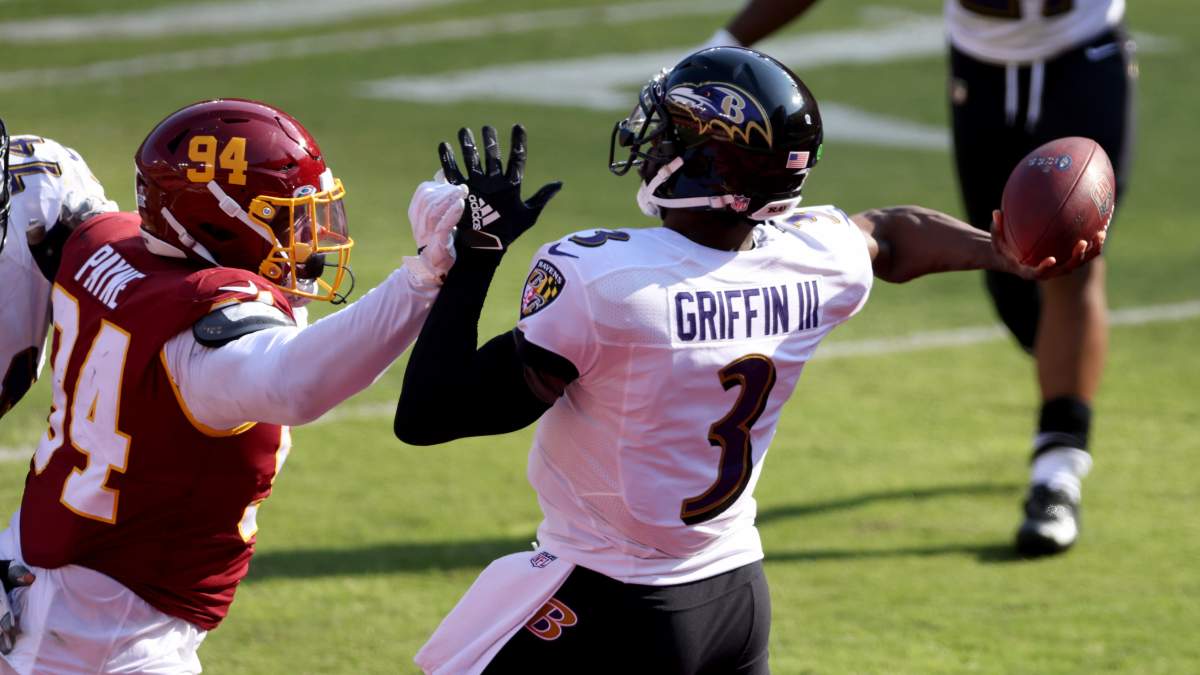 Injuries repeatedly stunted Griffin’s career, but he eventually found his way to the Ravens, where he backed up Lamar Jackson and played with Hollywood Brown.