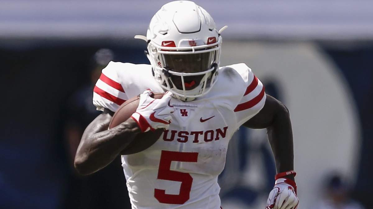 GettyWide receiver Marquez Stevenson #5 of the Houston Cougars rushes past cornerback Caleb Clear #29 of the Navy Midshipmen and other defenders during the second quarter at Navy-Marine Corps Memorial Stadium on October 24, 2020.