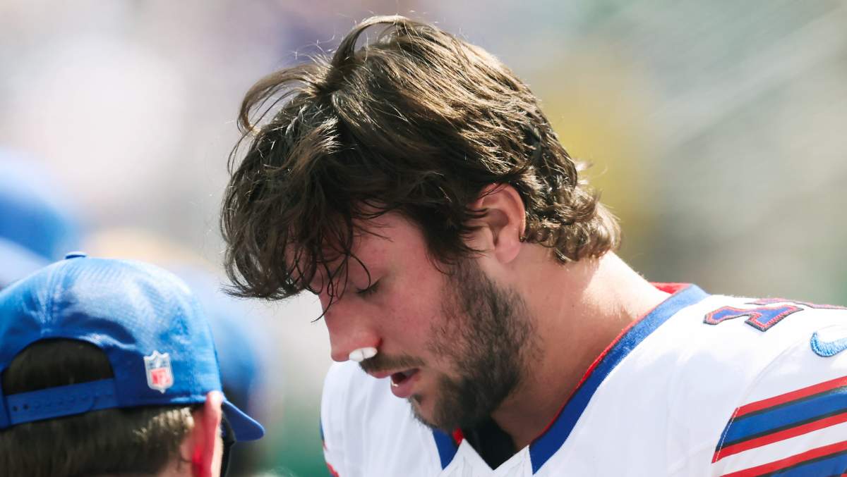 It was a scary scene for Buffalo Bills fans late in the first quarter against the Jets on Sunday. On a designed run to the right, Bills QB Josh Allen was tackled from behind by Jets S Andre Cisco. His face collided with the back of one of his offensive linemen’s legs, and he immediately jogged to the sideline and sought out the medical training staff.