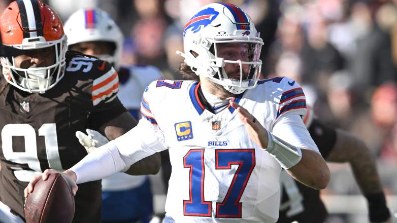GettyCLEVELAND, OHIO – DECEMBER 21: Josh Allen #17 of the Buffalo Bills scrambles against the defense of the Cleveland Browns at Huntington Bank Field on December 21, 2025 in Cleveland, Ohio. (Photo by Nick Cammett/Getty Images)