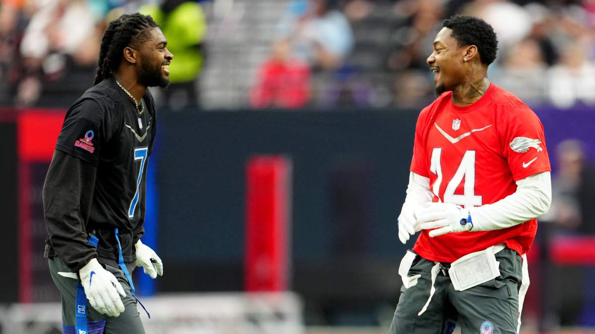Brothers Stefon and Trevon Diggs compete against each other in the NFL Pro Bowl's flag football game.