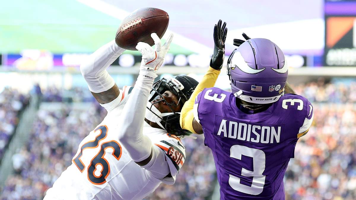 “He’s so long that he’s able to knock balls away or haul them in,” Bears coach Ben Johnson said. “We definitely needed that one.”