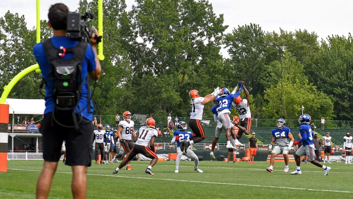 Browns cornerback Troy Hill and Giants wide receiver Sterling Shepard came to blows on the practice field. Hill was still in his pads and uniform while Shephard had his jersey off.