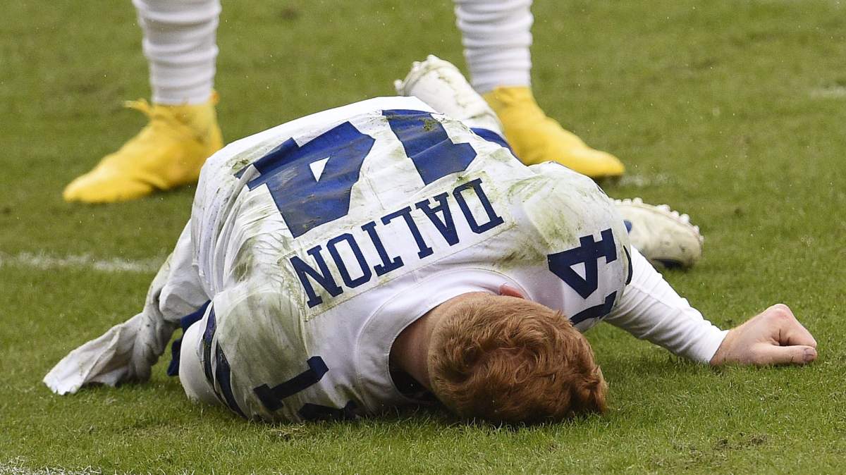 Dalton laid crumpled on the FedEx Field turf, seemingly if momentarily unconscious. A cart was called and then waved off as he walked slowly to the locker room with the assistance of the Cowboys’ medical staff.
