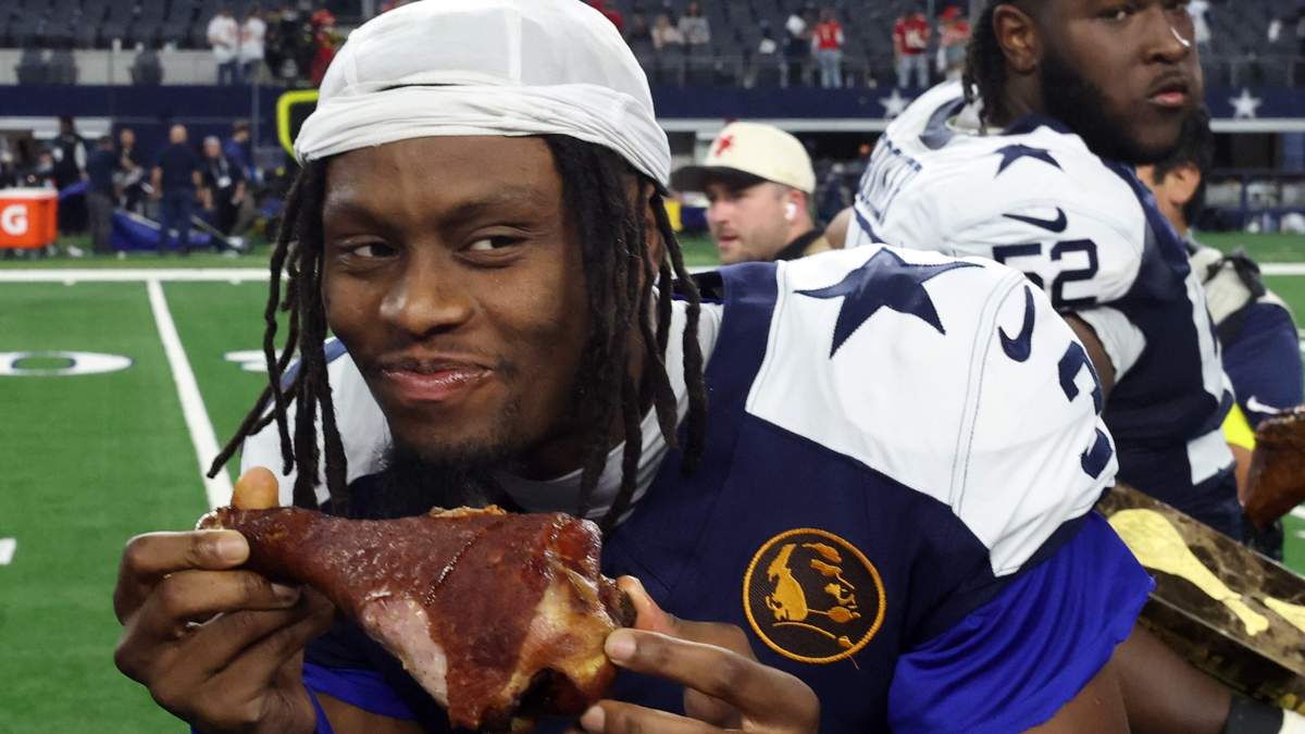 Jones met with reporters in the bowels of the Cowboys home stadium on Thursday, holding a turkey leg and smiling broadly.