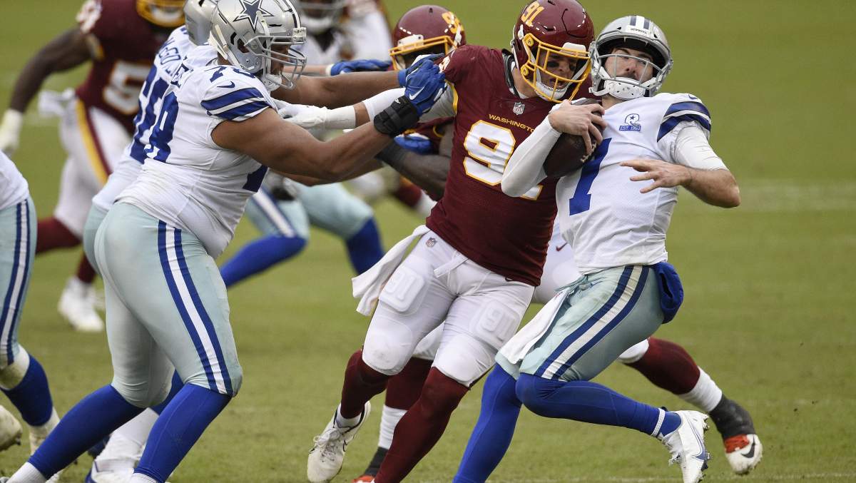 The Cowboys’ duct-taped front-five allowed 2.8 sacks per game, the seventh-worst rate in the NFL. Backup quarterback Andy Dalton, filling in for Dak Prescott, made 11 appearances yet absorbed 24 sacks. This unit was a sieve, and it started along the edges with Steele and Knight as the primary culprits.