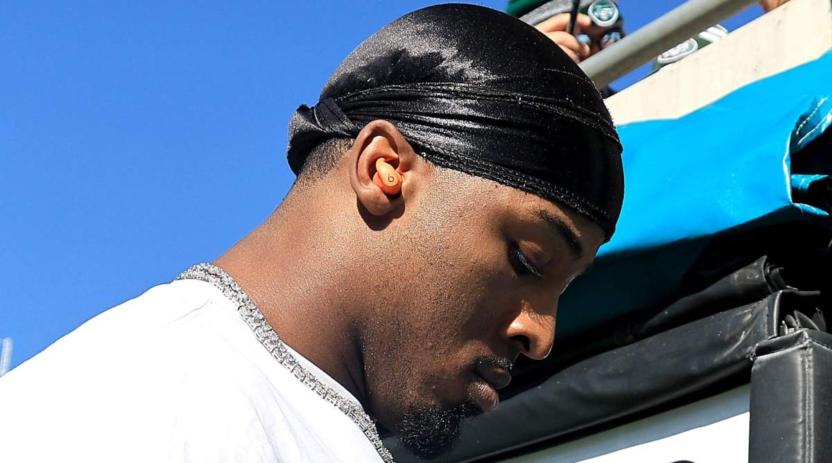 GettyBreece Hall #20 of the New York Jets looks on against the Arizona Cardinals.
