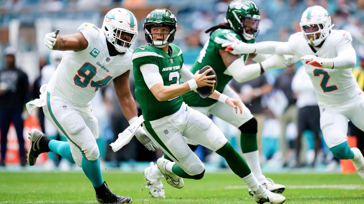 After being selected No. 2 overall out of BYU in 2021, Wilson struggled mightily in three seasons with the Jets. He went 12-21 as a starter but was pressed into duty in 2023 after Aaron Rodgers tore his Achilles tendon on the first offensive series of the season. It was a year in which Wilson had hoped to be able to learn under the four-time NFL MVP’s tutelage.