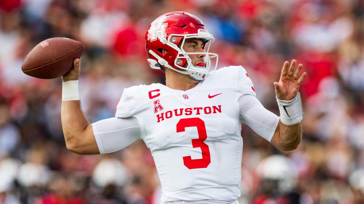 “One option I would like to bring up here is Houston quarterback Clayton Tune. A player who’s seen as a very intriguing late-round pick. Tune had a break-out year last year, over 4,000 passing yards, 40 touchdowns and a team-leading 546 rushing yards. He operates well in rhythm, he has enough arm strength and mobility as a developmental option. I think they could find a lot of intrigue in him,” Reid said in the clip.