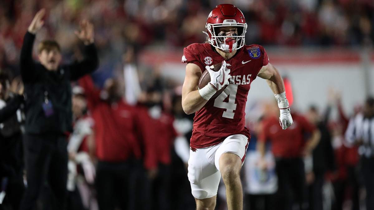 TeSlaa will bring plenty of size to Detroit’s receiving corps, standing at 6-foot-4 and 214 pounds. He was a big-play specialist at Arkansas, leading the SEC with a 19.5-yard average per reception. TeSlaa was a sure-handed receiver, making 62 catches for 897 yards and five touchdowns in his two seasons with the Razorbacks with no drops.