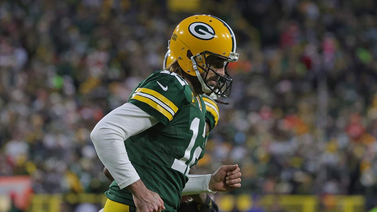 GettyAaron Rodgers, of the Green Bay Packers, leaves the field following a game against the Los Angeles Rams at Lambeau Field on November 28, 2021 in Green Bay, Wisconsin.
