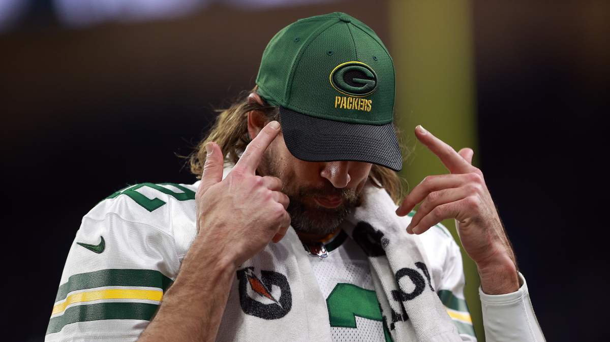 GettyQuarterback Aaron Rodgers of the Green Bay Packers looks on before a game against the Cleveland Browns at Lambeau Field on December 25, 2021 in Green Bay, Wisconsin.
