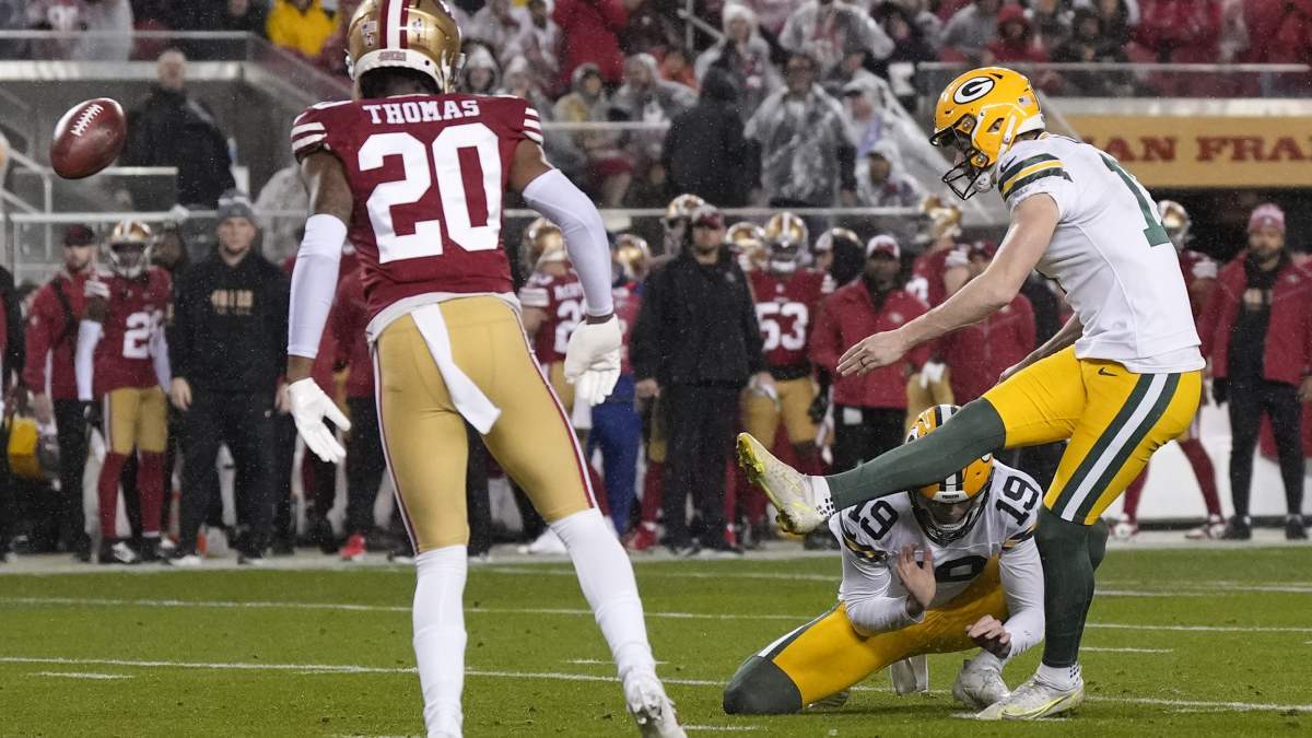 As for the kick itself, the Packers had used an extraordinary run from Aaron Jones—a 53-yarder—to get themselves deep into San Francisco territory, with a first-and-10 at the 24-yard line. But the drive stalled, setting up the chance to make a 21-17 lead a 24-17 lead. For Calrson, there was wind but he said he took that into account.
