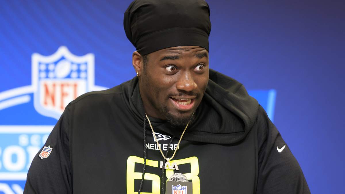 “Stewart is carved from granite, possessing a rare blend of traits, explosiveness and untapped upside,” the NFL.com scouting report writes. “He’s long and sudden off the snap but hasn’t learned to weaponize his hands to control the point of attack and bypass protection with go-to moves. His bull-rush compresses the pocket off the edge, and he’s too athletic for guards when reduced inside. He can be very disruptive in both phases but requires additional training to start converting his opportunities into finishes. The lack of production relative to the traits is a concern; still, players who move like him are highly coveted.”