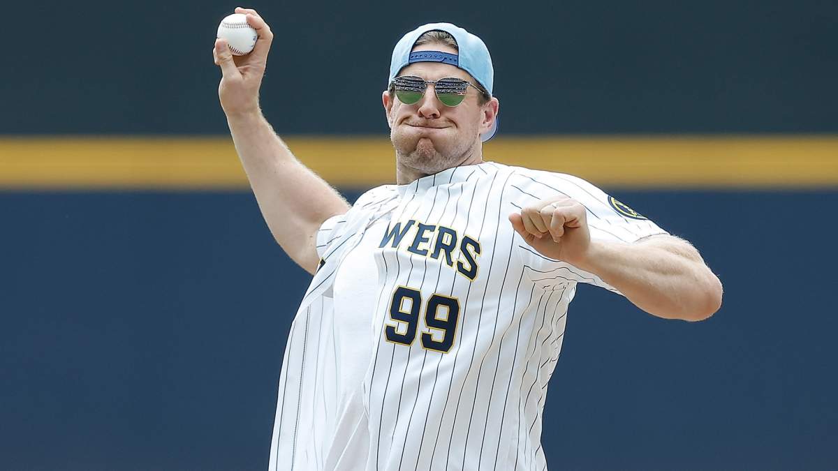 Recently, the Wisconsin native and Badgers alum threw the ceremonial pitch before the Milwaukee Brewers’ game against the Miami Marlins. In addition to being the guest of honor, Watt participated in the 9-9-9 challenge or consuming nine hot dogs and nine glasses of beer in nine innings. The five-time Pro Bowler completed the dare in 5.5 innings.