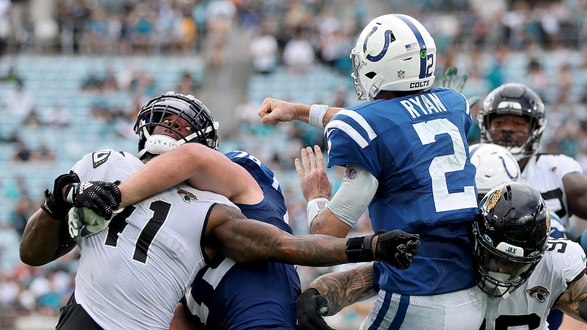 Indianapolis’ failure up front was a collective effort on the offensive line. Ryan was under too much pressure, and Jonathan Taylor couldn’t find running room early.