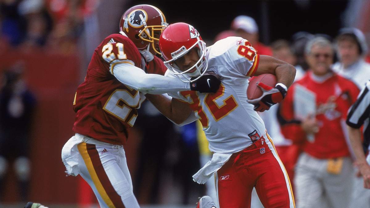A former first-round pick of the Cleveland Browns in 1994, Alexander only played four seasons for KC as a starter from 1998 through 2001. This partnership finished as the most productive stretch of his NFL career, with 3,685 receiving yards as a Chief — which currently ranks 11th all-time in the franchise’s history books.
