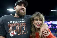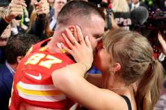 As the episode wrapped up, viewers of the video stream were treated to Kelce and Swift smooching, Kelce repeatedly gushing “I’m the luckiest man in the world,” and the 6-foot-5, 250-pound three-time Super Bowl champ “holding and stroking Swift’s hand and even kissing her head,” according to a report by the Daily Mail tabloid newspaper.