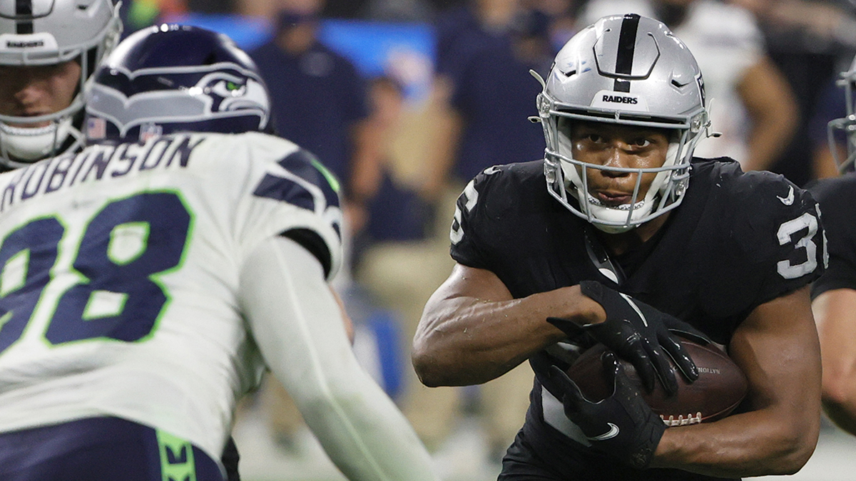 After watching last week’s Hall of Fame game against the Jacksonville Jaguars, the battle we’re keeping our eyes on is the Raiders’ running back room of Josh Jacobs, Kenyan Drake and rookie Zamir White.