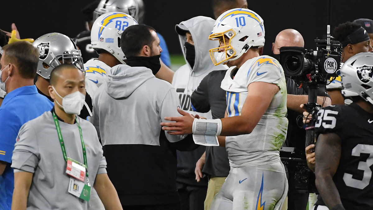 So far, 2020’s Offensive Rookie of the Year looks like his first year wasn’t a fluke. He’s thrown for 956 and six touchdowns through three games, leading the Chargers to a 2-1 record. Though they’ve only played against each other twice, Raiders quarterback Derek Carr has a bit of insight on Herbert.