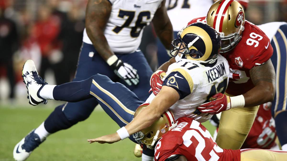 According to Pro Football Reference, Buckner is 5-3 overall against L.A. He also has a two-game winning streak over the Rams, with his last two wins coming as a 49er.