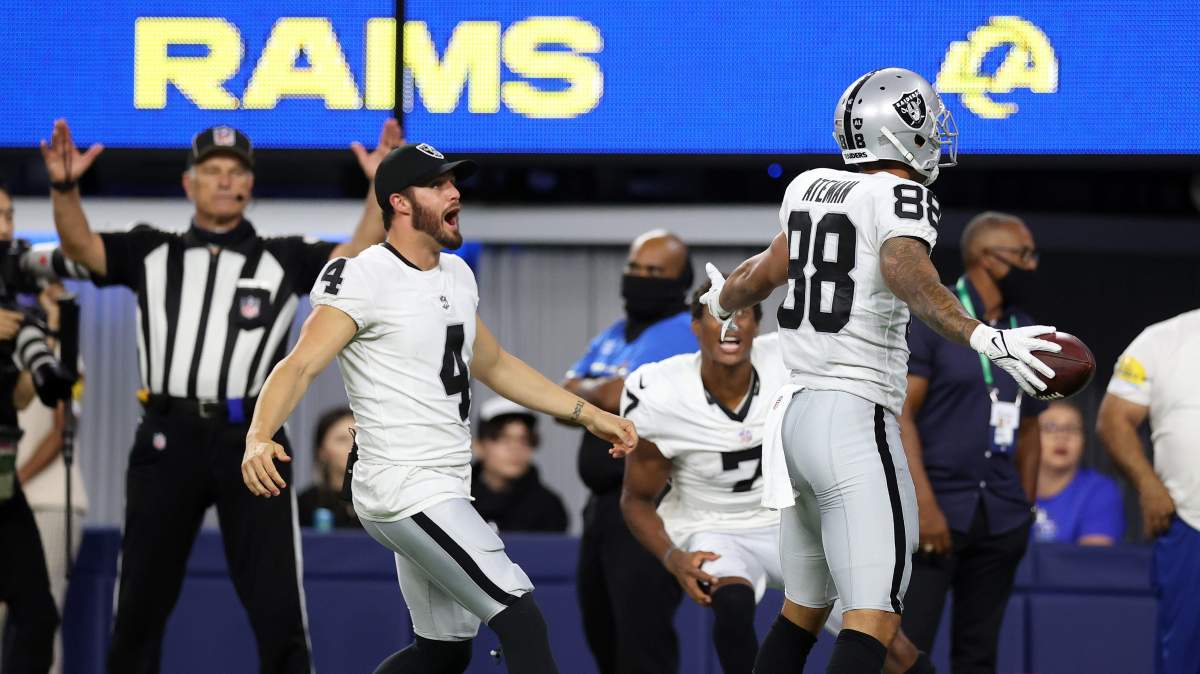 The upcoming Thursday Night Football battle between the Las Vegas Raiders and the Los Angeles Rams will pit Derek Carr versus…Baker Mayfield?