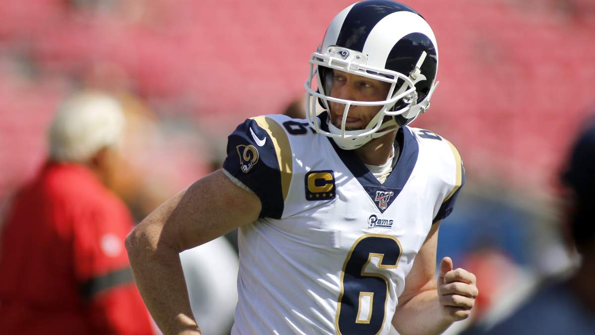 Longtime L.A. Rams punter Johnny Hekker posted this caption on his personal Instagram page: “Where my help comes from. Future is bright” while gazing up to the sky clad in his Rams helmet and practice uniform.