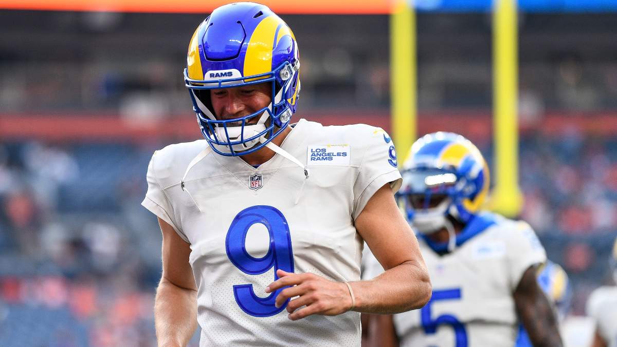 Matthew Stafford warms up before the Los Angeles Rams' final preseason game against the Denver Broncos on Saturday, August 28. Some NFL Network analysts believe Stafford will be a Super Bowl winner come February 2022.
