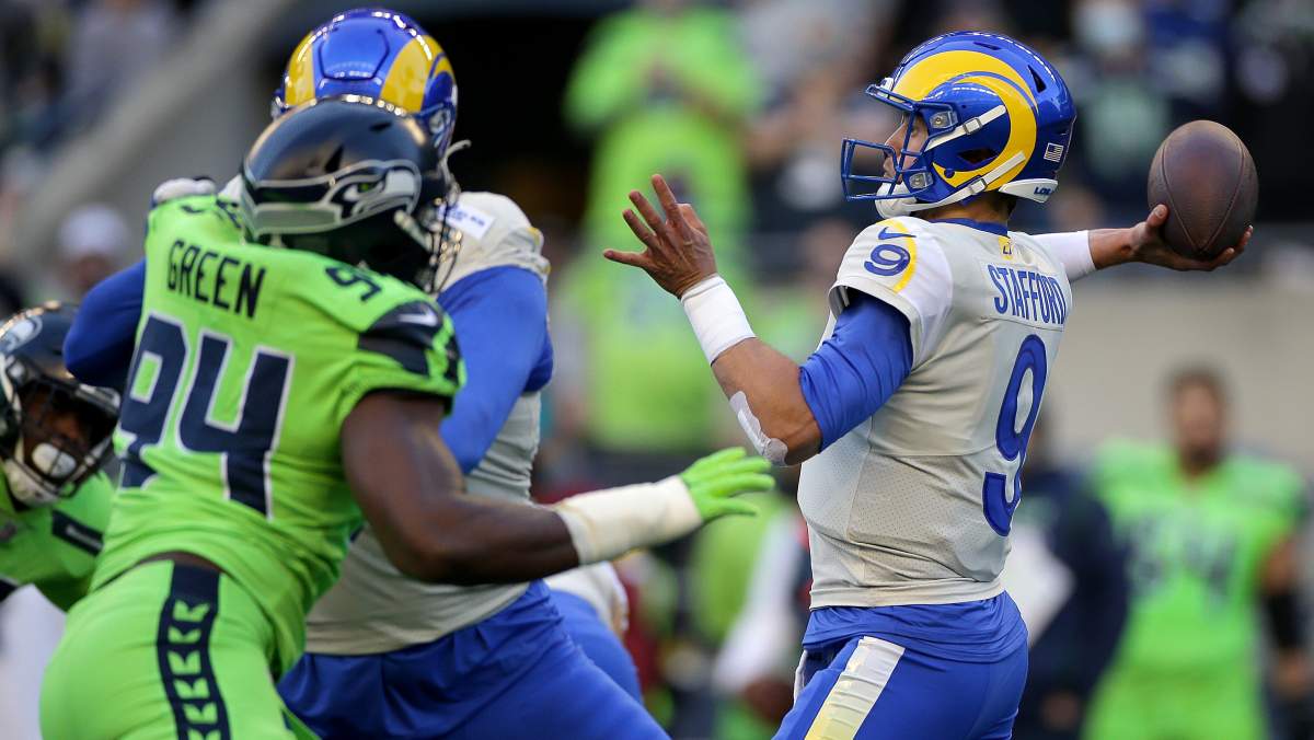 Both Matthew Stafford and Russell Wilson were playing through finger ailments during the Rams’ 26-17 road victory. The former with an index finger ailment and the latter needing to get his middle finger snapped back in during the third quarter.