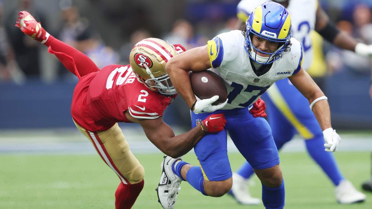 Nacus has played a significant part in reinvigorating the Rams offense. And despite the 30-23 loss to the San Francisco 49ers, Nacua elevated his numbers against what was the league’s best defense a year ago with 15 catches for 147 yards. And he posted that production catching against six different 49ers he drew in coverage.